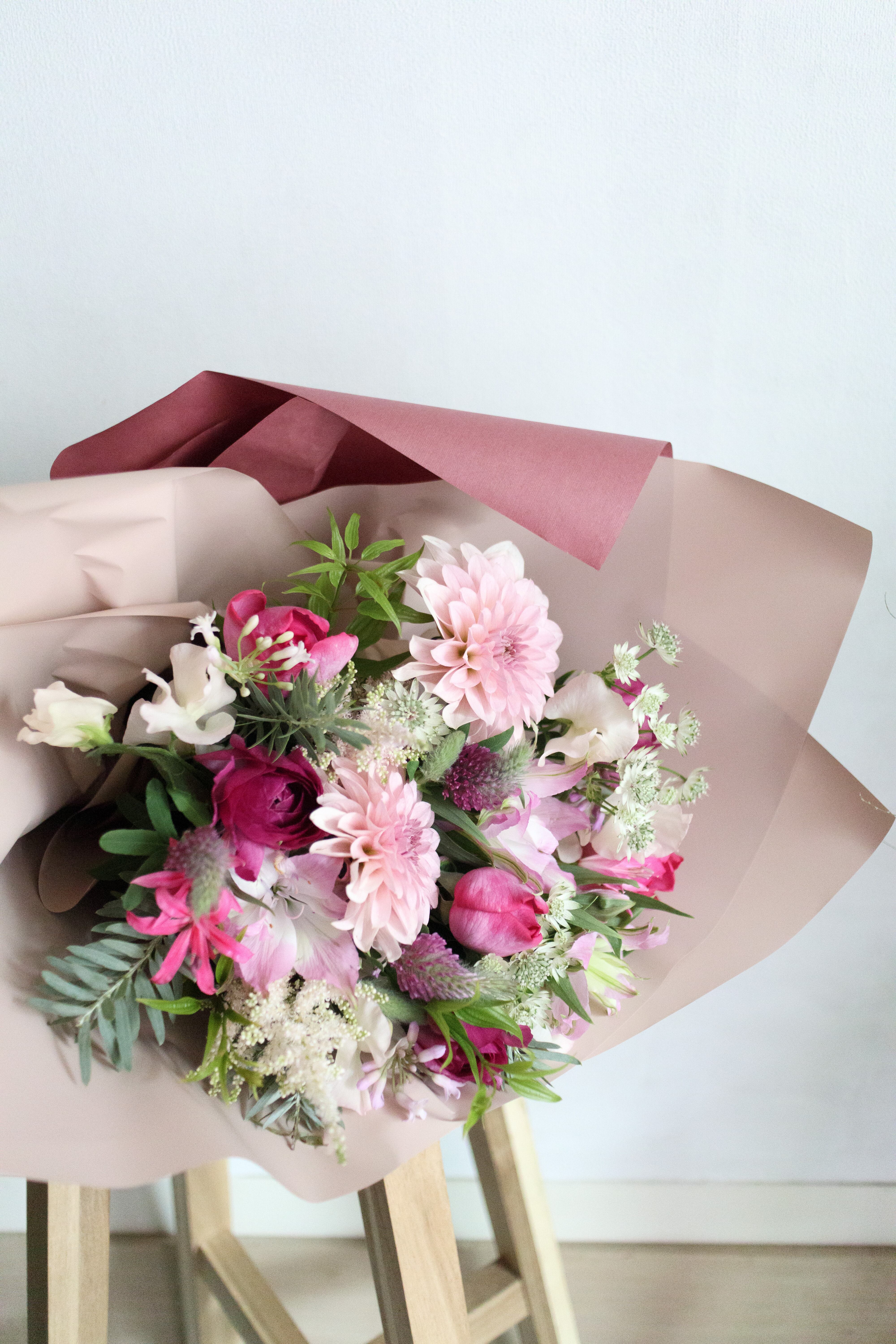 伺ったイメージに合うように季節感溢れる草花でお届けします。