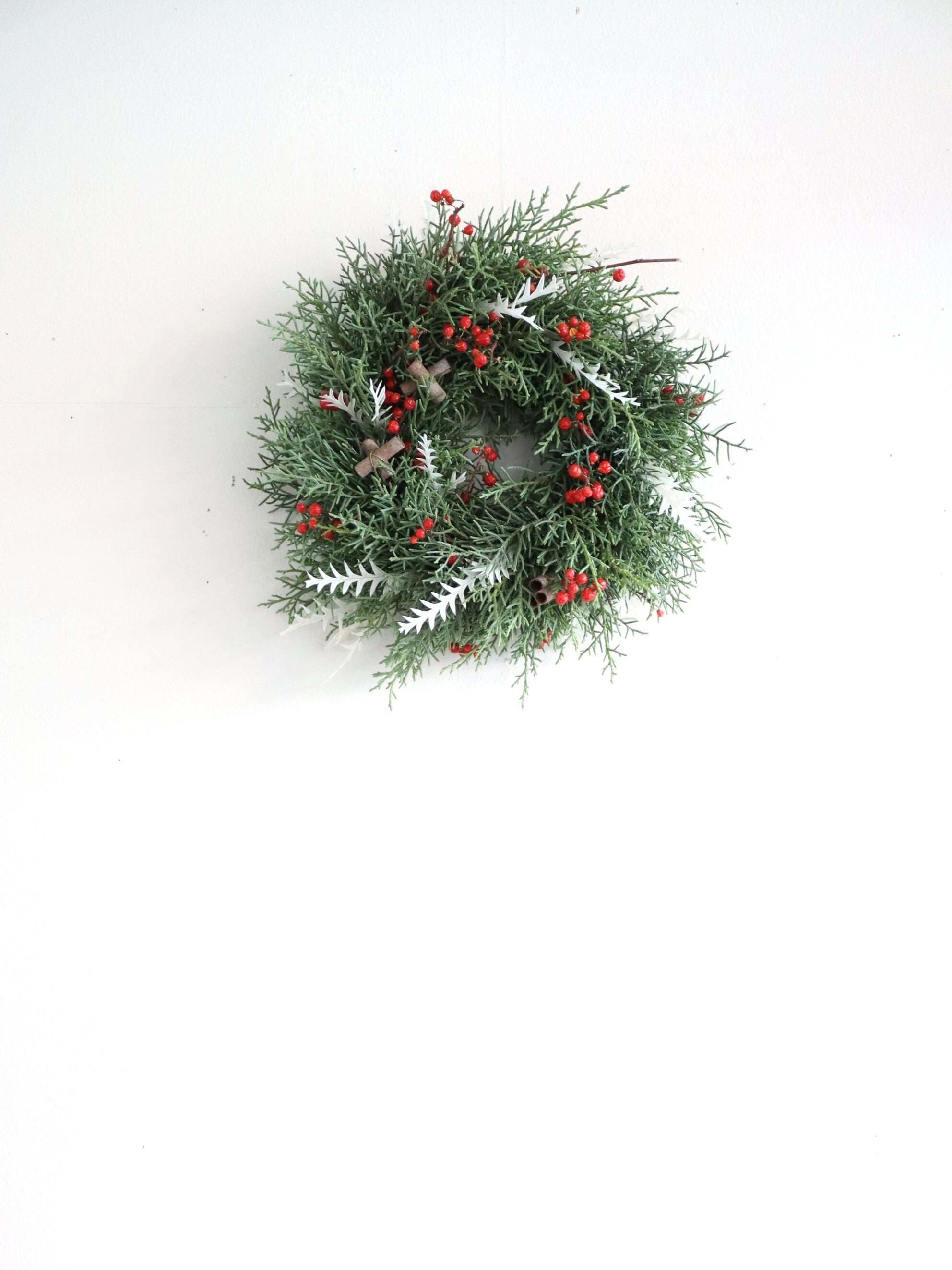 爽やかな香りの針葉樹をベースにしたホリデーシーズンにぴったりなクリスマスリース。
