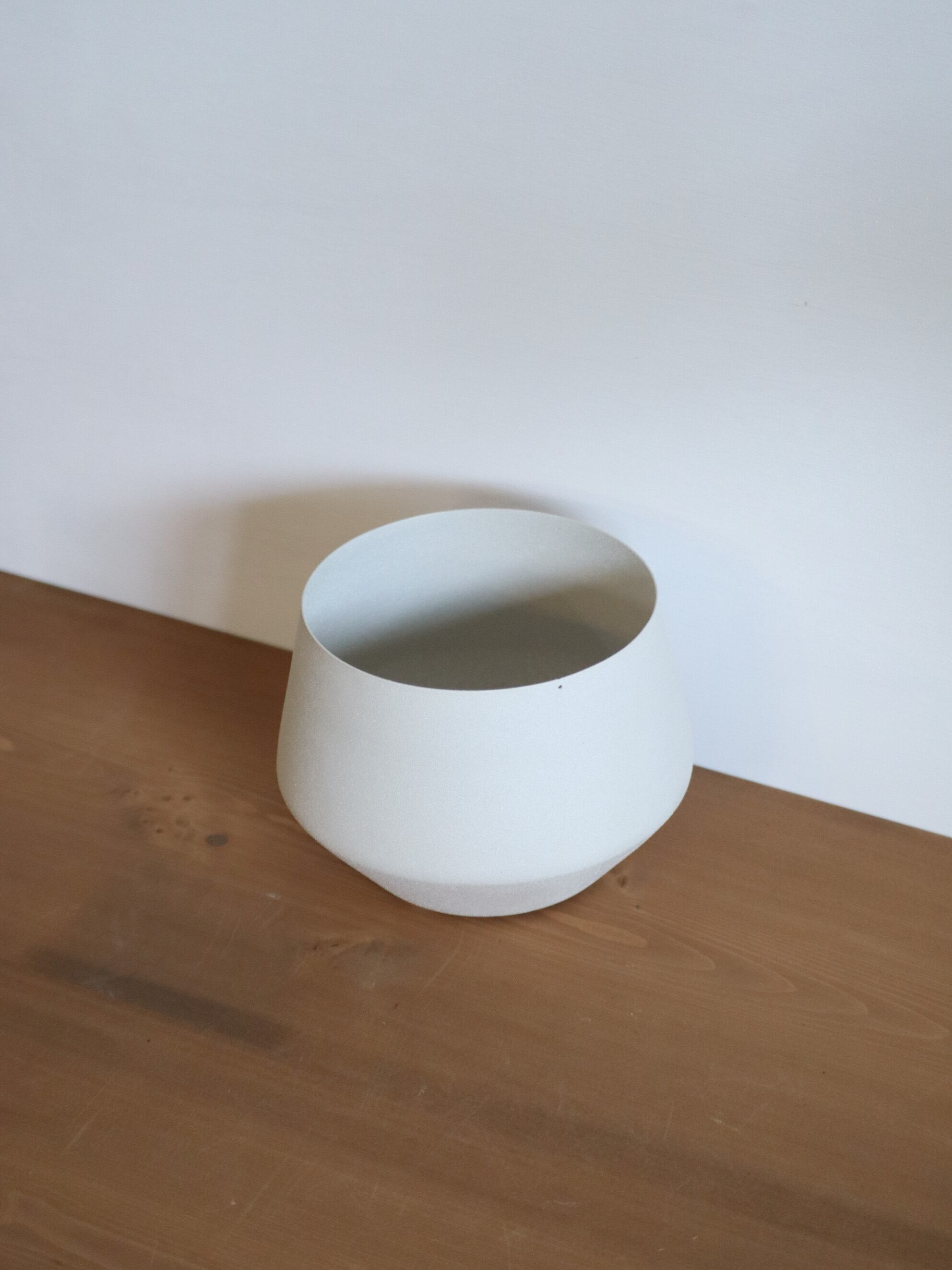シンプルなデザインでどんな観葉植物にもよく合います。きめ細かいざらっとした表面は手触りがよく、光の陰影が美しいポットカバーです。